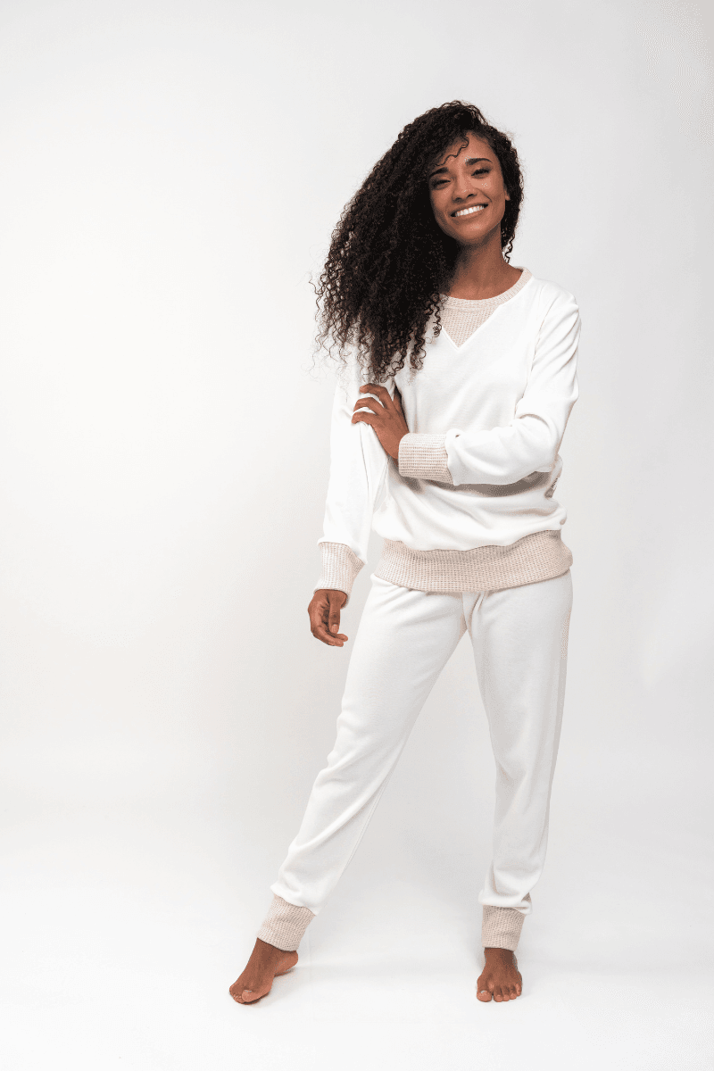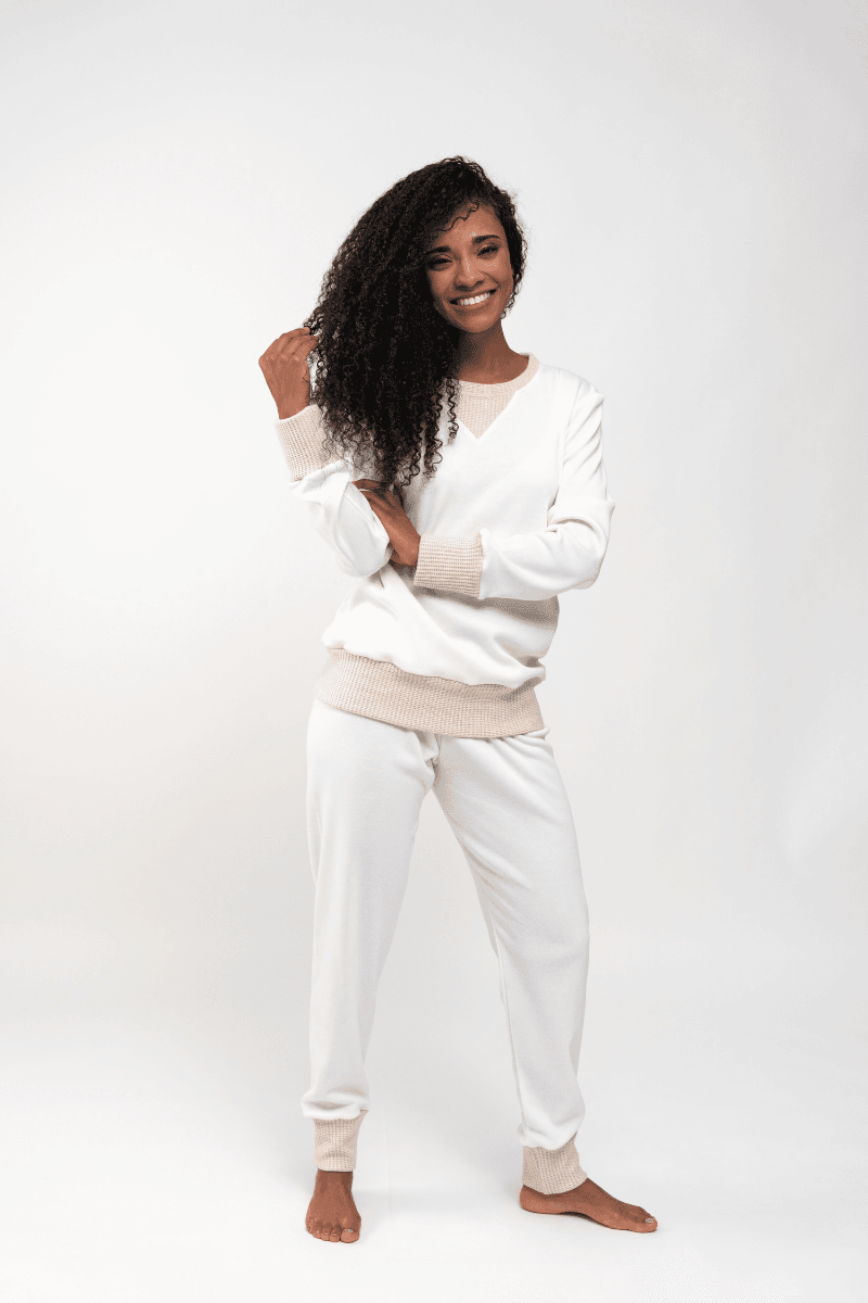 Γυναικεία πιτζάμα της εταιρίας Mira. Ύφασμα υψηλής ποιότητας από 63% πολυεστέρας και 37% βαμβάκι με ζεστή εσωτερική επένδυση τύπου fleece. Μπλούζα με λάστιχο στον λαιμό και στα μανίκια για άνετη εφαρμογή. Το παντελόνι, σε ίσια γραμμή με λάστιχο, συνδυάζει κομψότητα και άνεση. Ιδανική για χαλάρωση στο σπίτι ή για έναν ήρεμο ύπνο τους κρύους μήνες. Η εφαρμογή είναι άνετη, το ύφασμα έχει ελαστικότητα και τα χρώματα είναι ανεξίτηλα. Αντοχή στο συχνό πλύσιμο και στην καθημερινή χρήση.